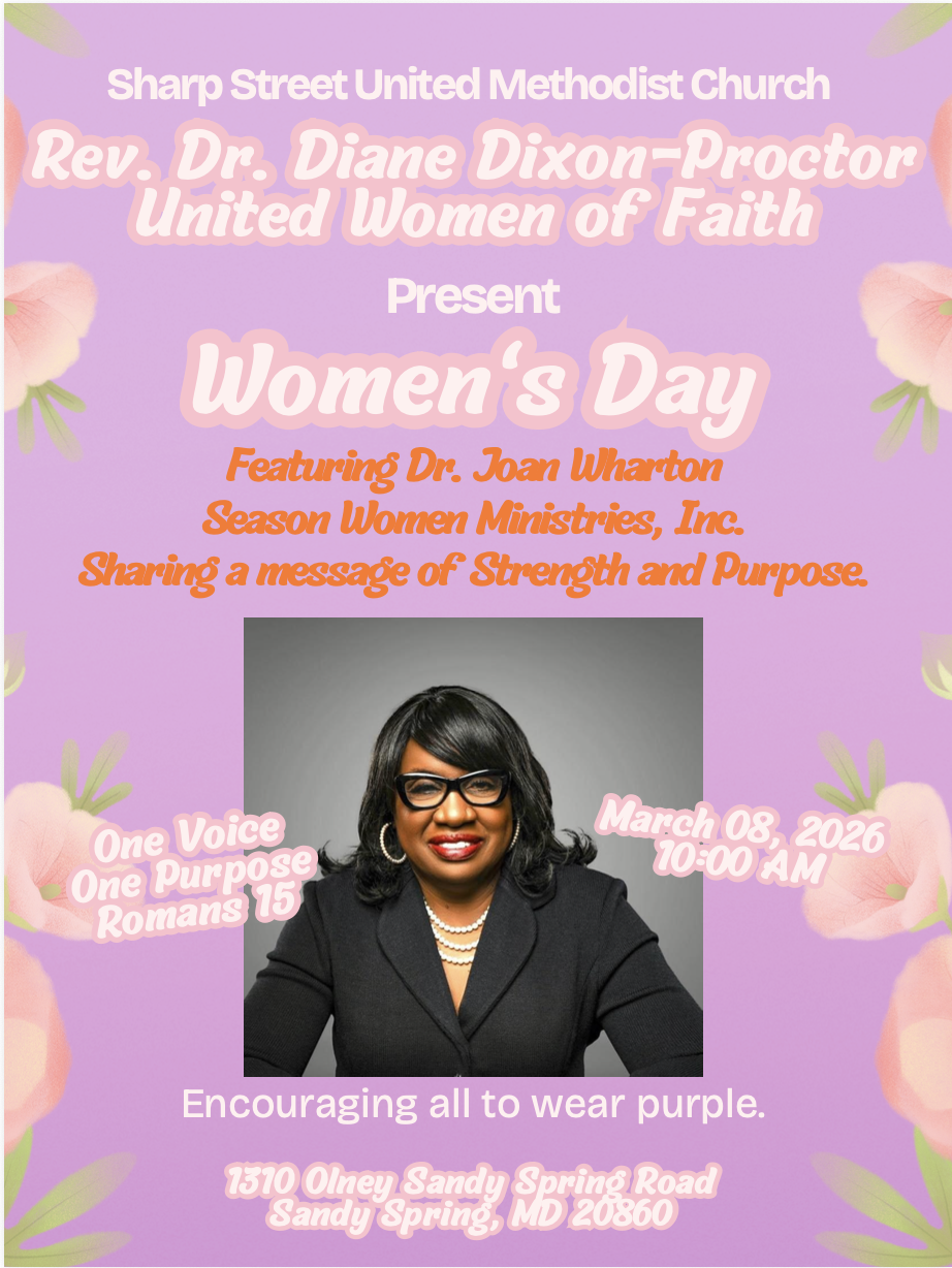 Join us on Sunday, March 8th at 10:00 AM for a spectacular Women’s Day Service. We are honored to welcome the powerhouse Rev. Dr. Joan Wharton as our guest speaker! It’s going to be a morning of elevation, community, and divine inspiration.